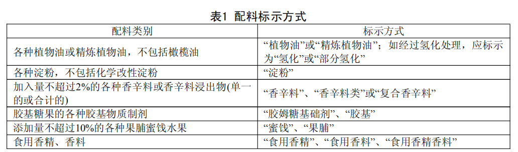 4.1.3.2 下列食品配料,可以選擇按表 1 的方式標(biāo)示。